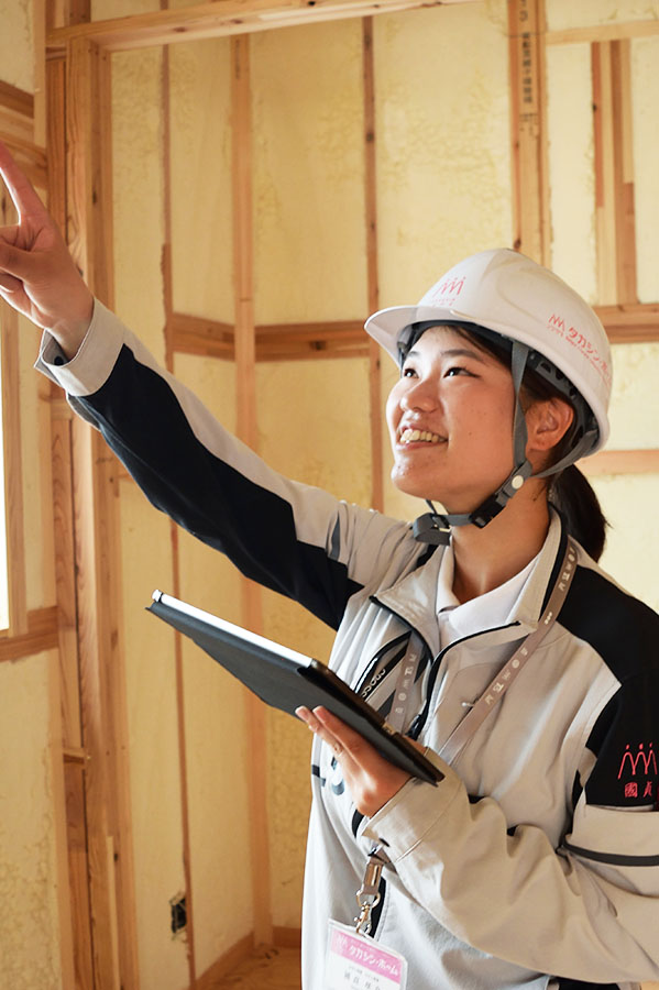 お将来、お住まいになるお客様の好みや要望に合わせて、細かなところまで一つひとつ思いを込めながら、暮らしやすいお家の設計図を作成することを心がけています。そうすることで、お客様に気に入っていただき喜んでもらえることが、この仕事をやっていてよかったと思う瞬間です。そして、自分が設計したいお家が完成した際には、毎回言葉にできない程の達成感と、感動を味わうことができます。